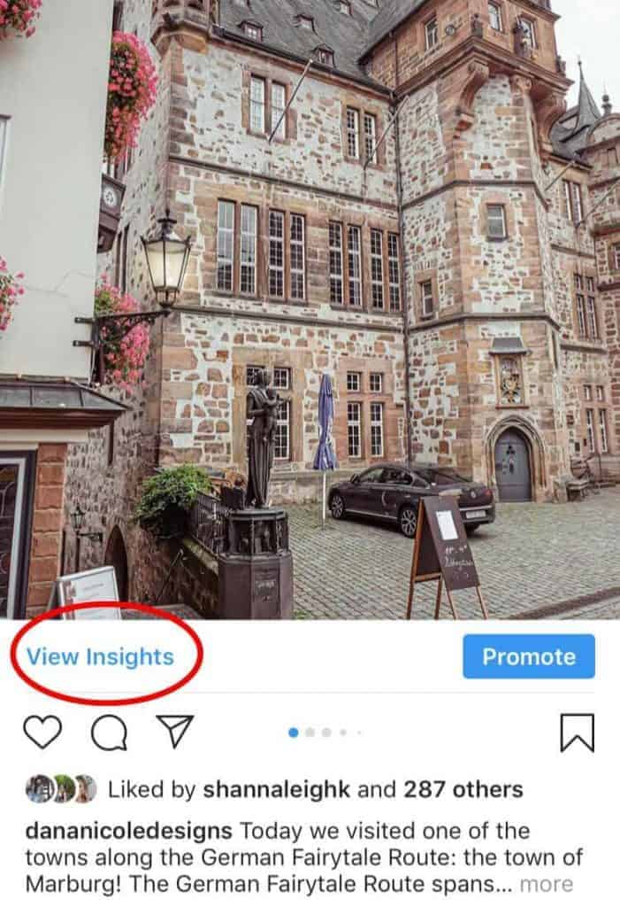 In order to view how many saves and share your photo has gotten, click on the “View Insights” button underneath your photo (you will need to have an Instagram business account set up).