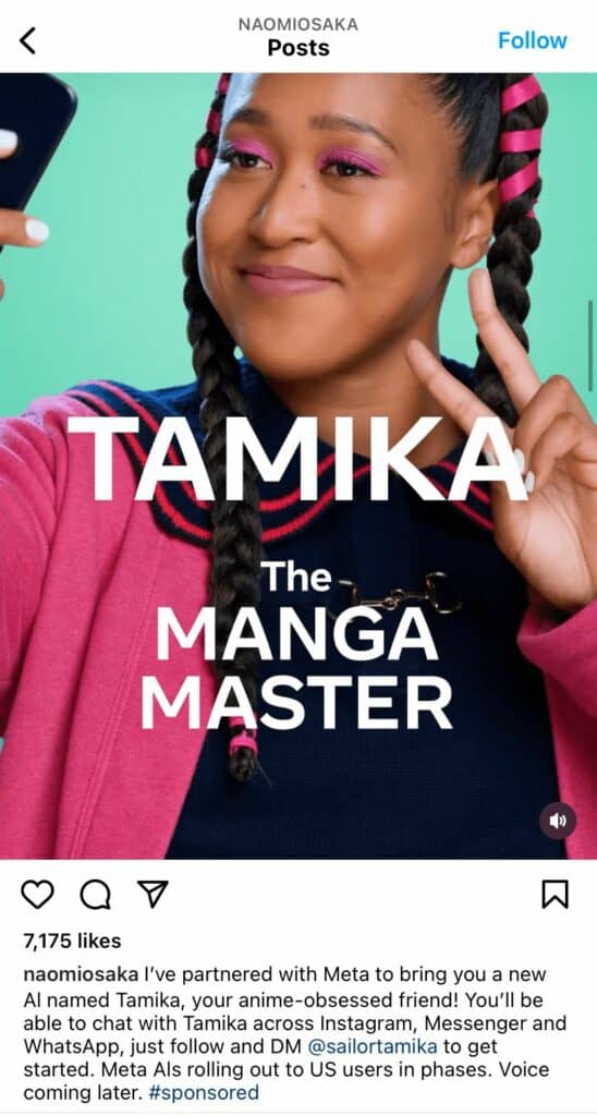 Naomi (the real person, not the AI) also posted this to her account, explaining that she’s partnering with Meta: